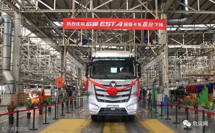 【从生产线上缓缓驶出的首台欧曼EST超级卡车】