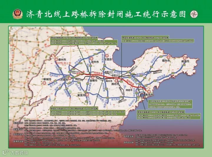 济青北线上跨桥拆除封闭施工绕行示意图,敬请收藏!