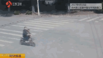 2017年4月15日,江苏苏州吴江区联中路与华鸿路路口,大货车的内轮差导致电动车上的母子二人被刮倒在地,幸好车辆刹车及时。交警提醒,遇到此类车辆转弯,行人骑车人一定要保持足够安全距离。