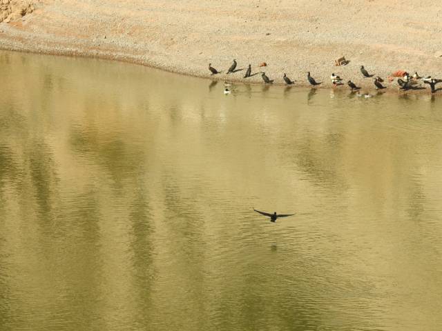 而在污水的河对岸,多种水鸟在觅食,不知道它们内心是有多无奈。