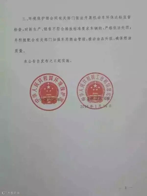 三、环境保护部会同有关部门依法开展机动车环保达标监督检查,对新生产、销售不符合排放标准要求车辆的,严格依法处罚;并积极配合有关部门加强车用燃油管理,推动油品升级,确保燃油质量。