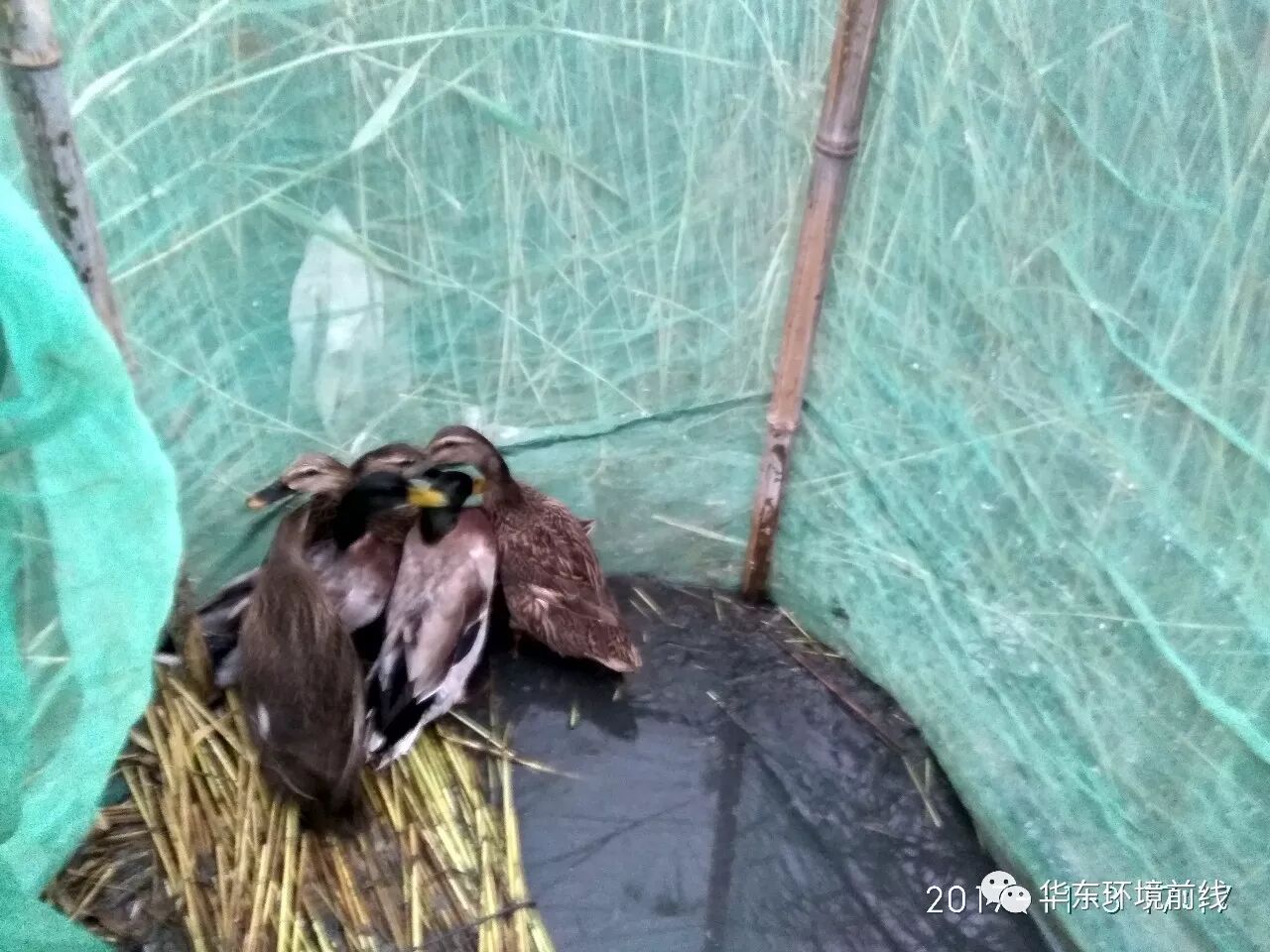 盗猎者听到声音已经在茫茫的芦苇丛中逃跑。在盗猎窝点20米处的插网内,发现5只野鸭媒子,3只斑嘴鸭、2只绿头鸭,都是国家三有保护动物。