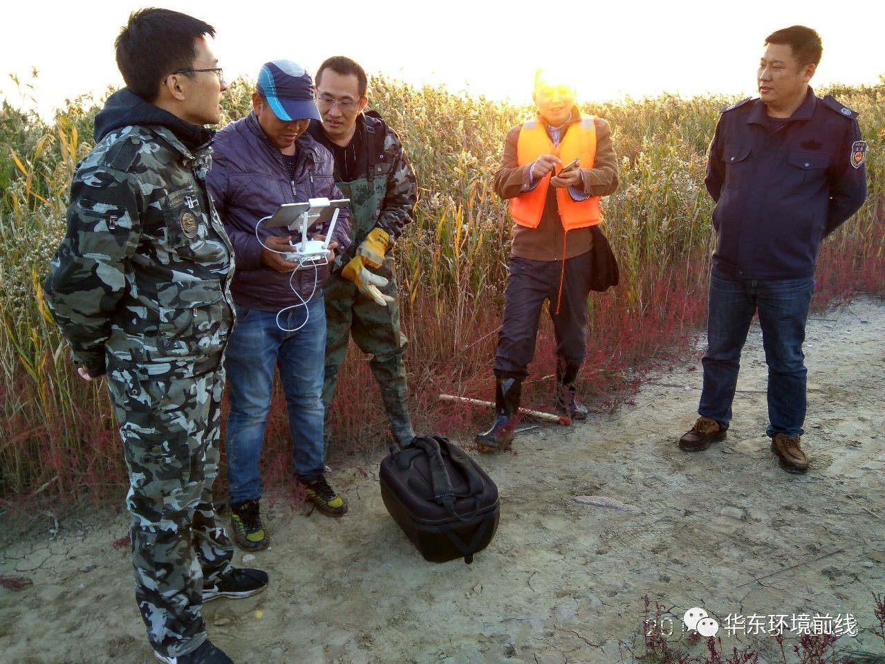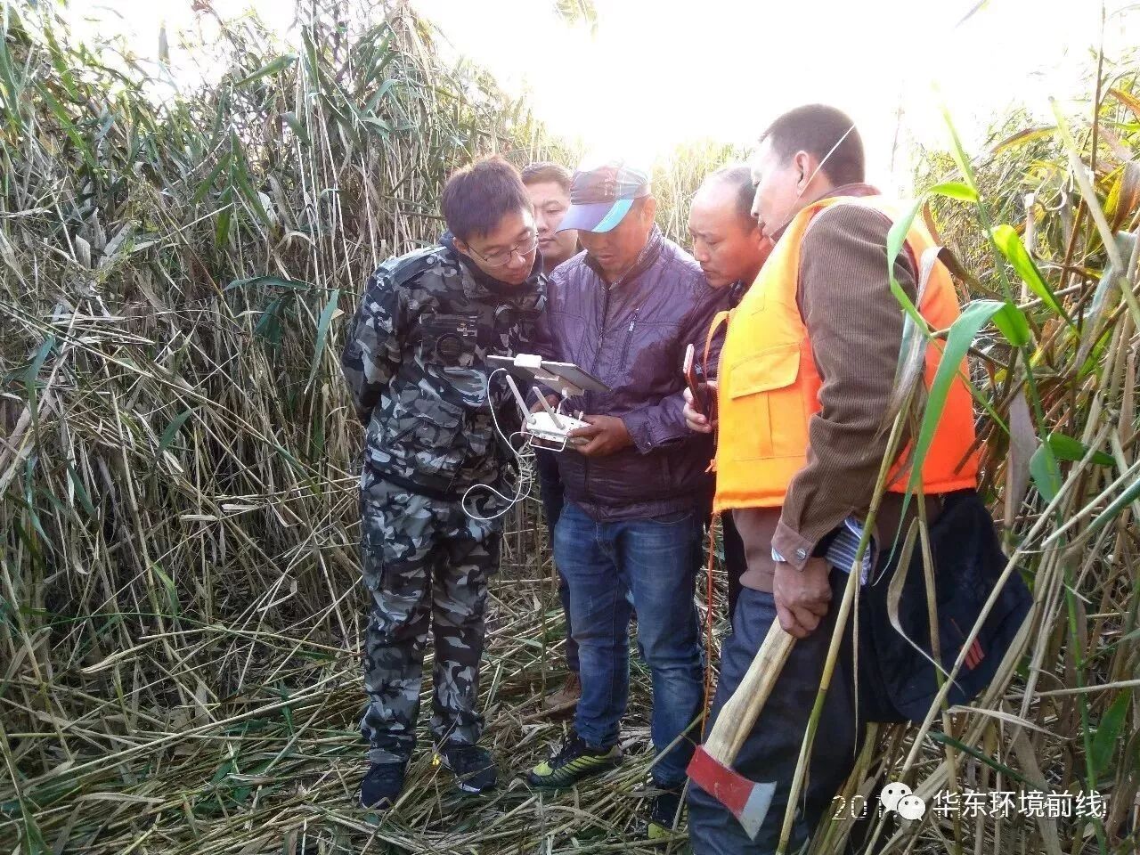 连云港市林业局工作人员和志愿者利用镰刀在芦苇荡中开出一处开阔地带。中国绿发会野保人士无痕老师用无人机给前面开路的人员指路。“向右前方继续开路,大家坚持一下,还有200米左右就能到达湿地内的堤上。”无痕老师冒着炸机的风险,利用无人机给前方的伙伴开路。