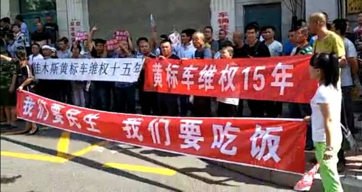 8月14日之前已经有部分卡车司机在信访办集结,而后黑龙江各地卡车司机、吊车司机也陆续前来。
