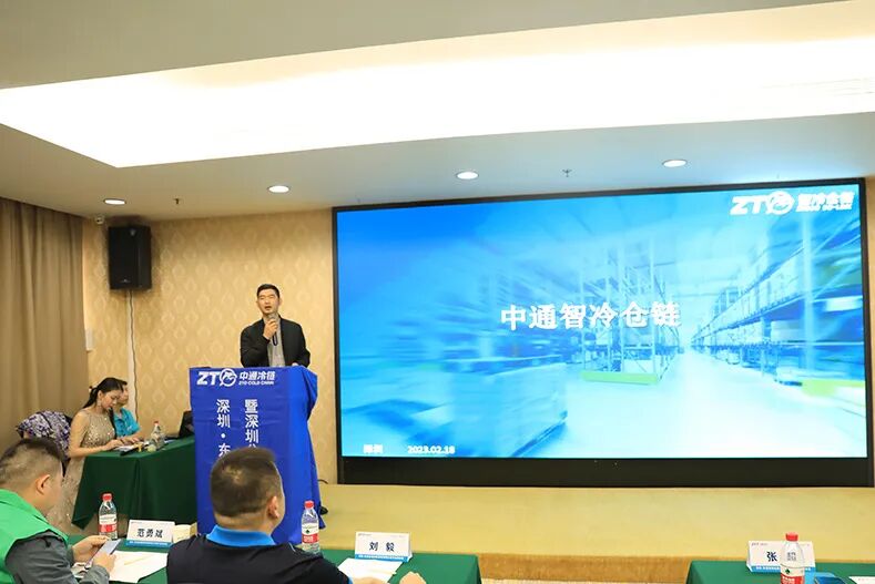 中通冷链深莞区域市场部高级经理唐进贵向大家详细讲解了中通冷链全线的产品服务,并向大家详细阐述了中通冷链的六大产品服务及解决方案。并介绍到,2023年中通冷链将不断深化网络建设,全国网点数量将达到2500个,实现全国80%以上区县覆盖,为市场提供全场景全程冷链门到门服务。