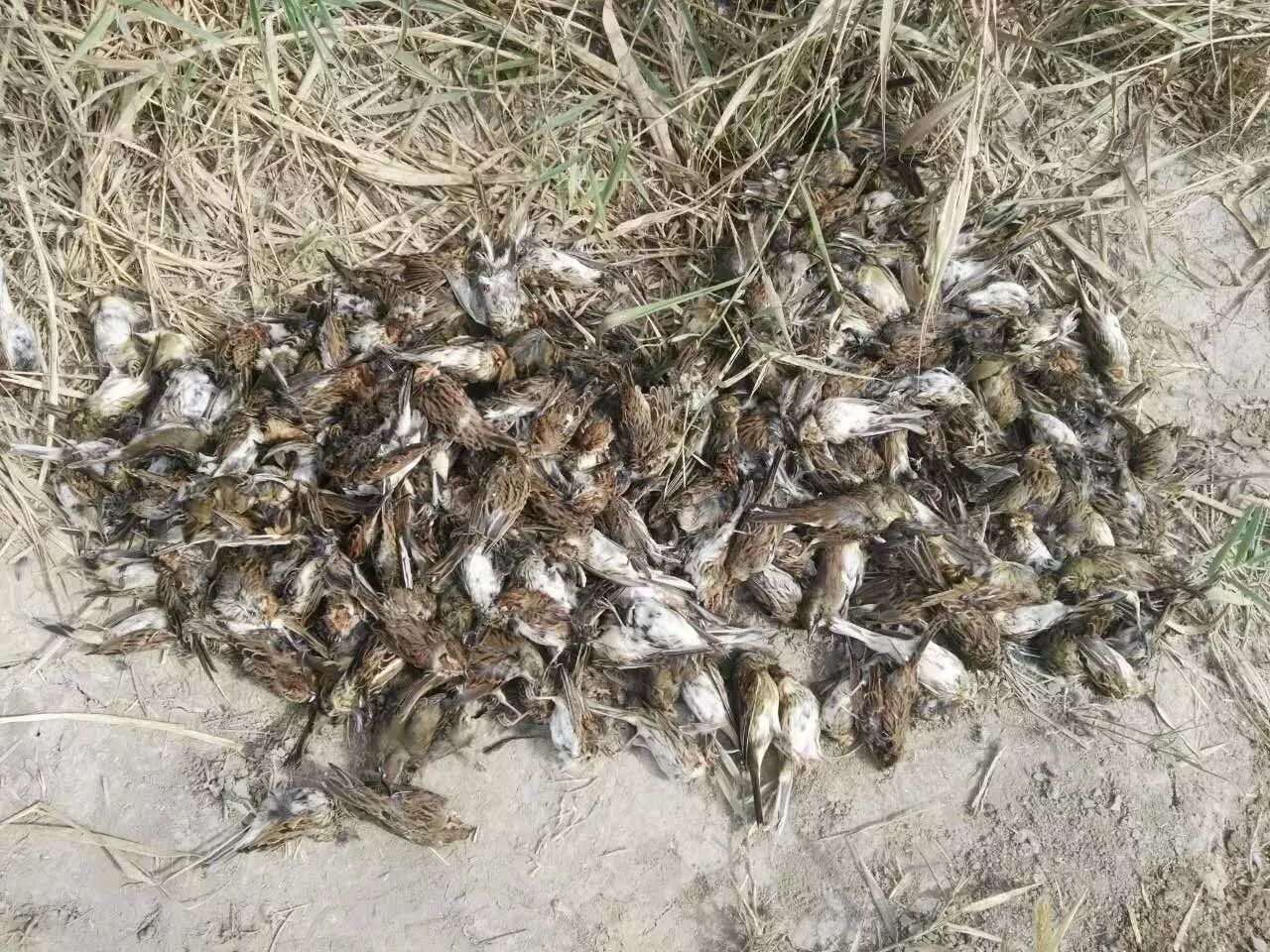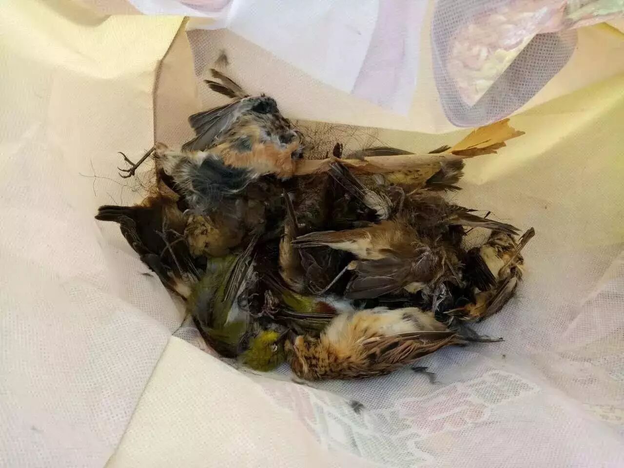 今日共拆除6处捕鸟网,总计4000余米,其中一处捕鸟网下面捕猎者还埋藏捕兽夹,解救猫咪一只,解救挂网候鸟200多只,掩埋死去的鸟儿400余只,并查扣摩托车一辆。