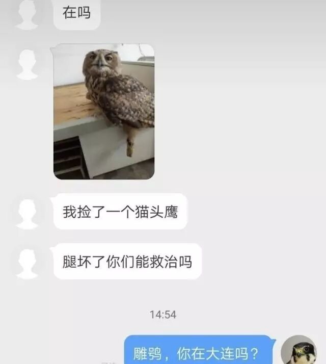 9月22日下午三点,大连护鸟志愿者群里接到求助信息,瓦房店某处村民小李在野外拉练过程中,发现一只猫头鹰被兽夹夹伤需要救助。