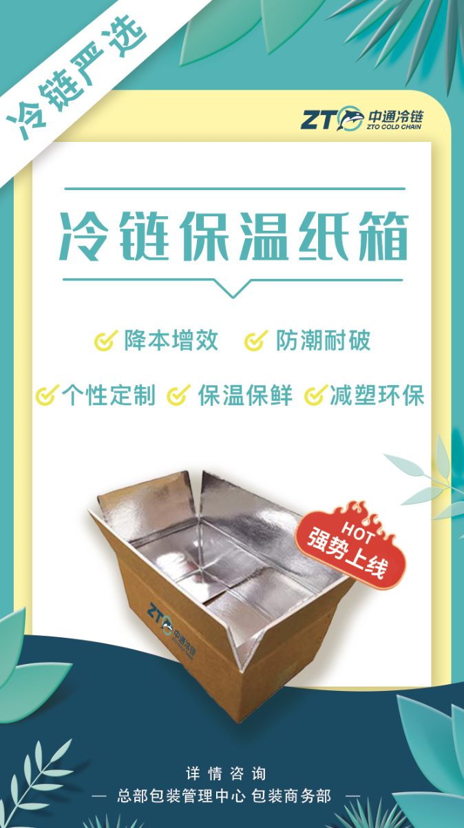 通过对商品生产、包装、分配和运输等环节的研究,中通冷链在包装材料的选择以及包装规格设计方面有了新的成果,一款能够较好满足冷链客户包装需求的新型冷链保温纸箱重磅上线,它的五大优势在一定程度上解决了客户的痛点问题。