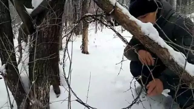 12月31日志愿者在喇嘛山上发现第一个猎套100米左右,又相继发现2个猎套,录像为志愿者发现并清理的第三个猎套。