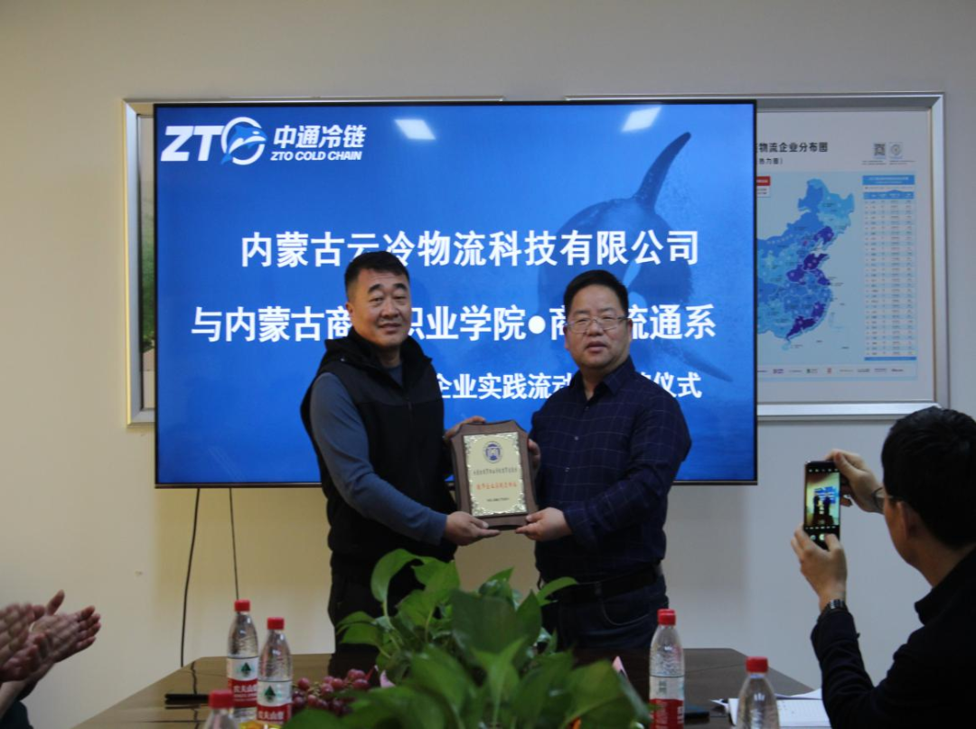 2022年1月17日上午,双方合作进一步加深,举行“共建教师企业实践流动站”挂牌仪式。中通冷链内蒙古管理中心省总杨智勇等相关部门负责人参加了授牌仪式,内蒙古管理中心成为内蒙古商贸职业学院商贸流通系校企合作第一站。