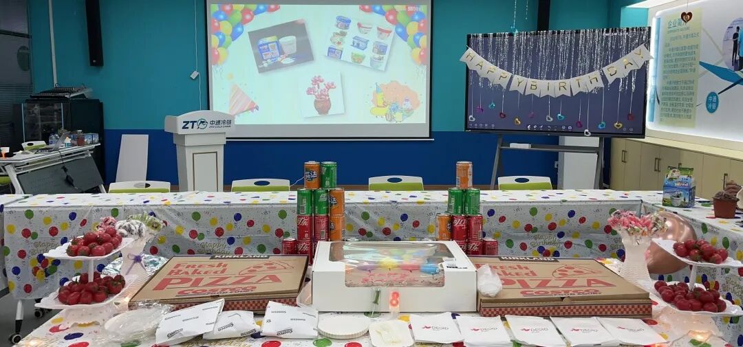 大家围在一起共享蛋糕与美食,共同分享着生日的喜悦。在中通冷链这个大家庭里,一直都会记得每一个特别的你。整个生日会时间虽然短暂,但温馨而热烈,欢声笑语,温情幸福不断。