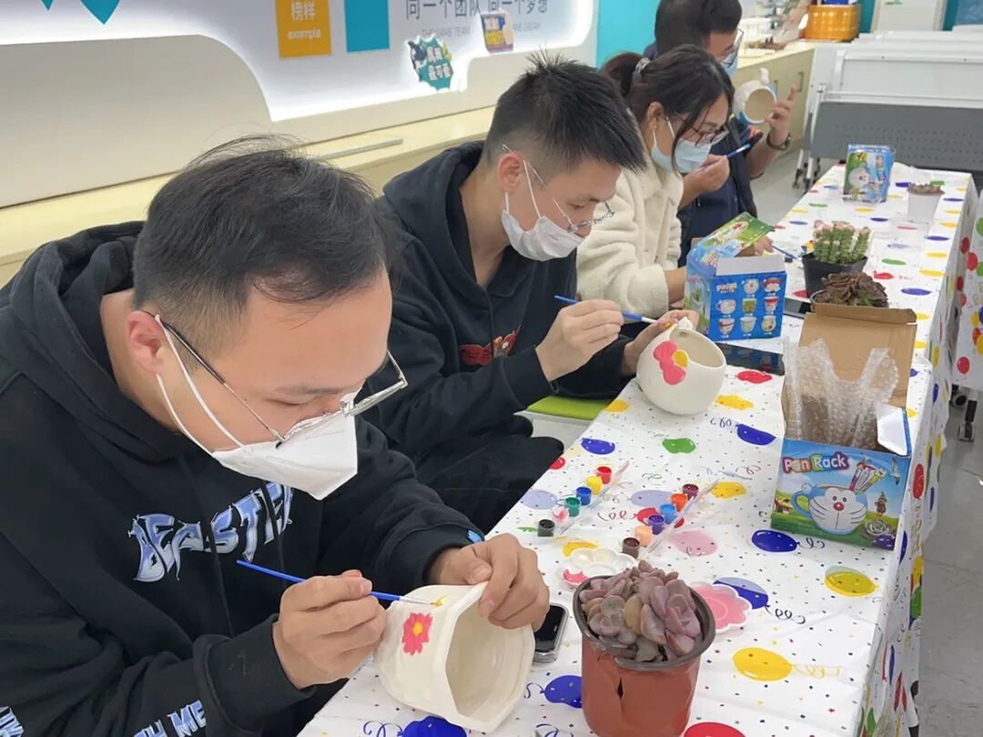 大家一起手绘花盆、移栽盆栽,将自己DIY的盆栽送给感恩的人,我们一起涂涂画画,一起享受美食,即满足了对幸福生活表达感恩可以诉之于口,还可以满足于胃,感谢公司的精心准备,让这个生日和感恩节过得更有仪式感。