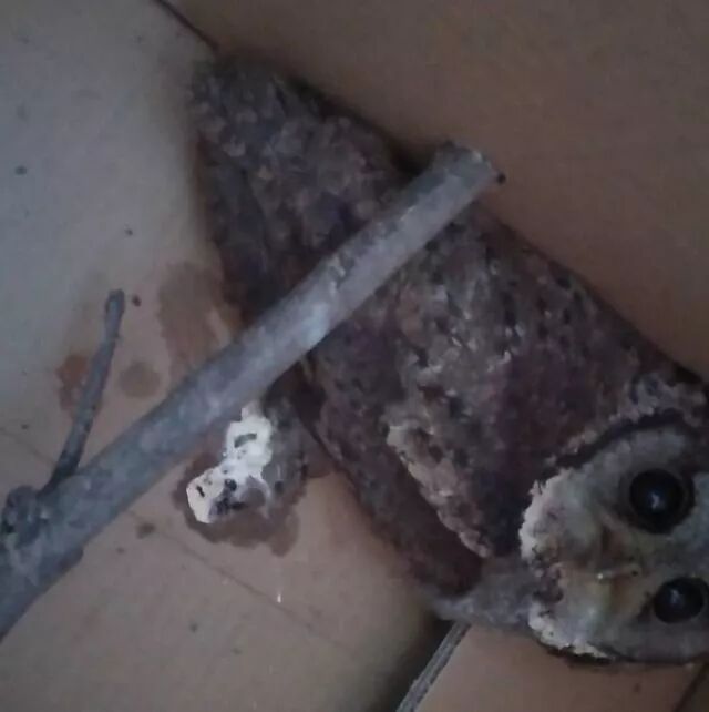 11月23号,十堰护鸟志愿者刘老师收到了朋友的求助,他的朋友在高速公路上捡到了一只无法飞翔的领角鸮,担心这只小鸮会收到伤害,刘老师火速去将这只小鸮接回家。