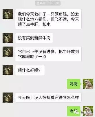 在仔细检查小鸮发现没有受伤后,刘老师担心这只小鸮是太久没吃东西了,飞不动了,但天晚了没有买到新鲜的肉,刘老师向我询问这只小鸮的适合的食物。