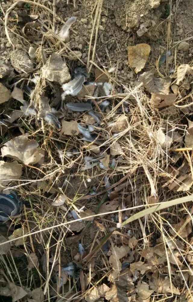 两只斑鸠一前一后的飞过来,落到面前很近的地方,借着树干的遮挡,它们没有发现我,暖暖的阳光让它们忘记了危险,时机来临,我风一样的朝着后面的那一只斑鸠抓去,抓住了,顾不得太多,用受过伤的左腿支撑,右爪紧紧的抓住斑鸠,找一个安全的地方进餐。先“打毛”,把斑鸠的毛都拔光再进餐,虽然打毛要费很长时间,但是对于我们讲究的苍鹰来说,这是必须的过程。还没有完全吃完的时候,听到后面有人经过,扔下还没有来得及吃完的斑鸠仓皇飞起,飞到一棵杨树上站定,才发现是爸爸来找我。