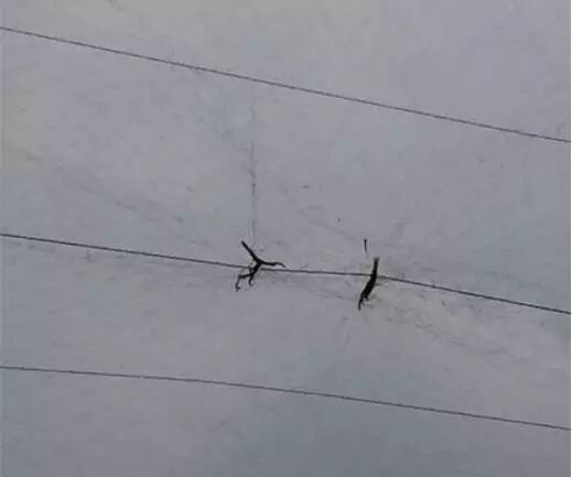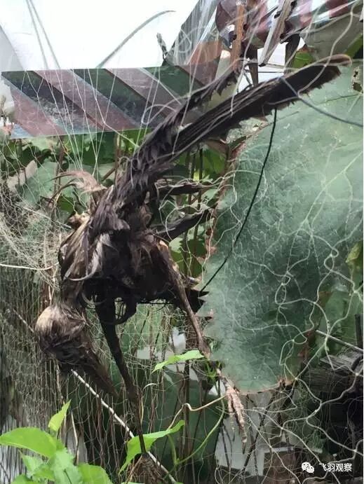 驱鸟带外,一张大型鸟网上一只椋鸟已死亡多时