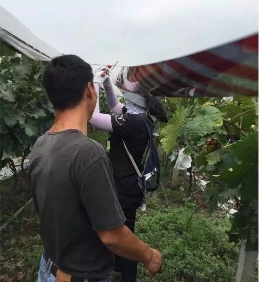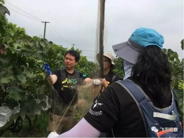 经园主反馈,此处果园明年起将搬迁,但今年仅剩一月左右的葡萄销售期,由于当初选址时未料及,该果园靠近树林,虽然有鸟网也无法阻止鸟来啄食葡萄;志愿者向其介绍了驱鸟带,并建议其如果来年所迁新址仍旧靠近树林,还是考虑使用防雹网,给予最安全的防护。