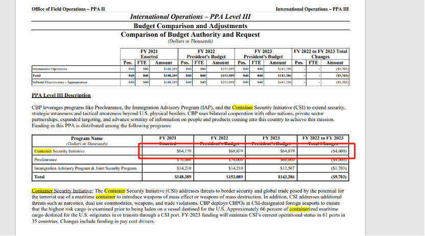 图2:《Department of Homeland Security U.S. Customs and Border Protection Budget Overview 2023》