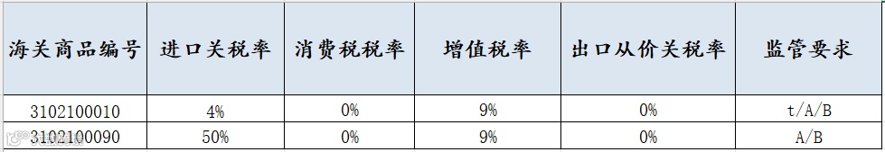 需要注意的是,31021000项下有两个税号,分别为3102100010和3102100090。