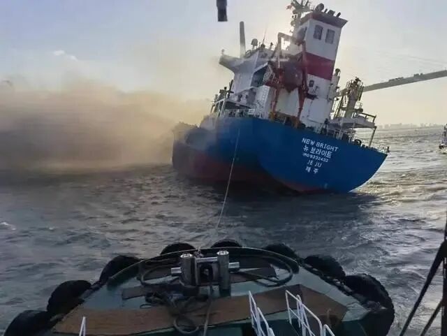 当天下午5时许,常熟海事发布《关于长江常熟段船舶起火爆燃的情况通报》。通报称,12月21日15时08分许,一艘韩国籍船舶“新光号”空载下行至长江常熟段苏桥#6左右通航浮附近水域时船舶起火爆燃,在船人员22人,船上未载货。
