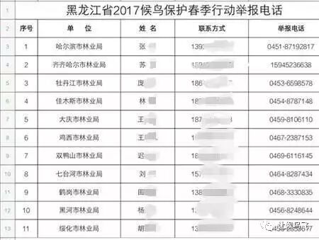 目前,黑龙江省林业厅已部署了全省2017年春季护鸟行动,护鸟举报电话及联系人通道也已全面畅通,只待更多志愿者加入护鸟行列啦!