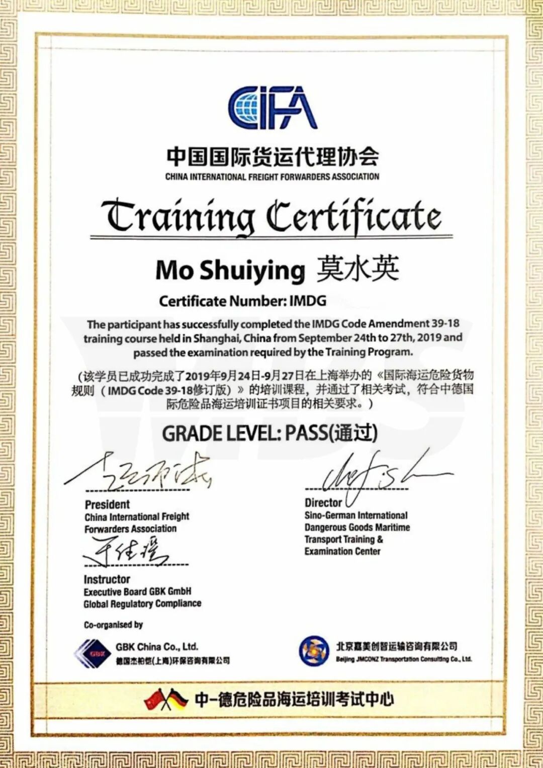 通过考试检查学习情况,考试通过后,将获得德国GBK合规咨询颁发的“中德国际危险品海运培训证书”。