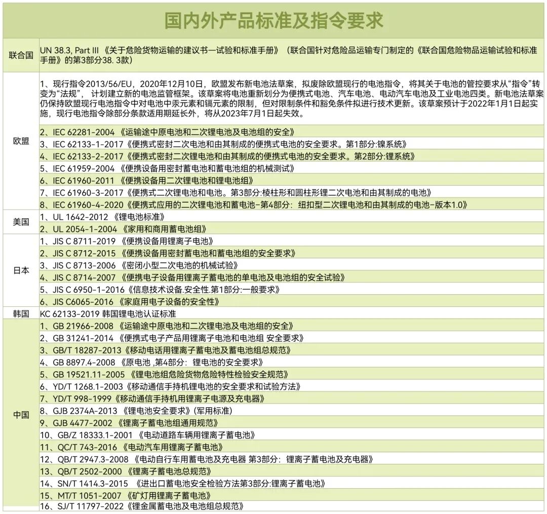 随着锂电池造成的安全事故频发,人们对锂电池的安全隐患都有了深刻认识,各国陆续制定完善相关标准或准入指令,监管锂电池质量。