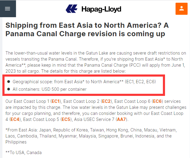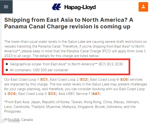 当下,巴拿马运河正遭遇严重干旱,一再调整吃水限制,集装箱船被迫减轻负载并支付更高的费用,通过运河的运输成本进一步增加。