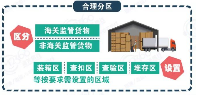 第二十三条 第二款 装卸、储存、集拼、暂时存放非海关监管货物的,应当与海关监管货物分开,设立明显标识,并且不得妨碍海关对海关监管货物的监管。