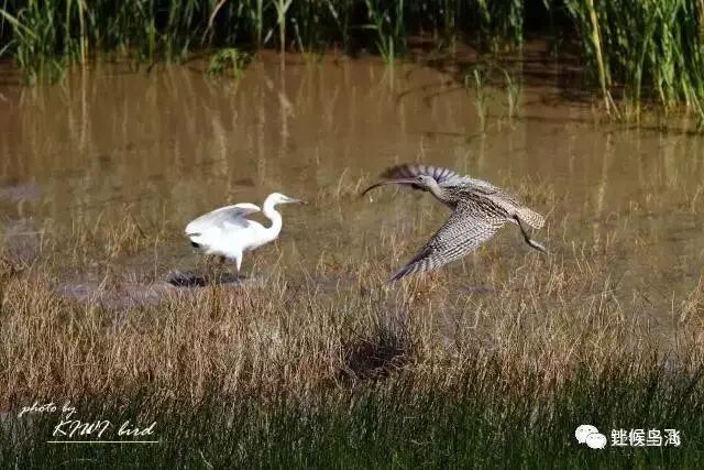 芦苇荡中的白鹭和大勺鹬,拍摄于南汇东滩。