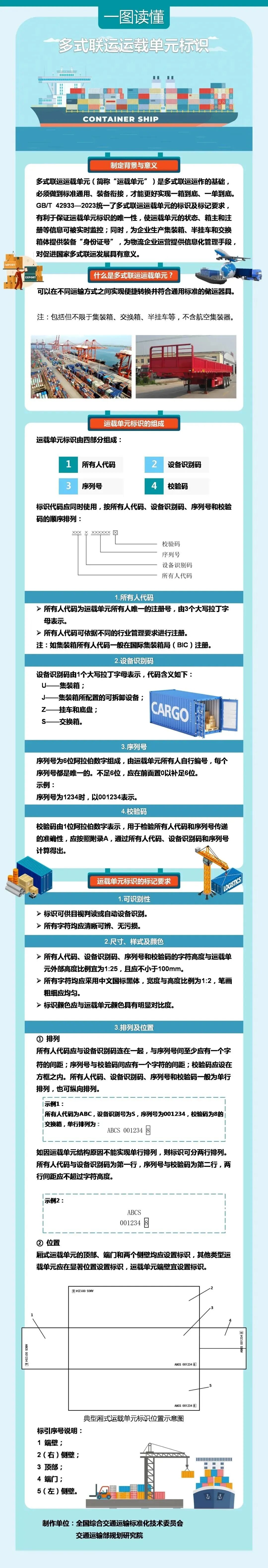 近日,交通运输部组织编制的《多式联运货物分类与代码》(GB/T 42820-2023)和《多式联运运载单元标识》(GB/T 42933-2023)两项国家标准获批发布,将于2023年12月1日起实施。