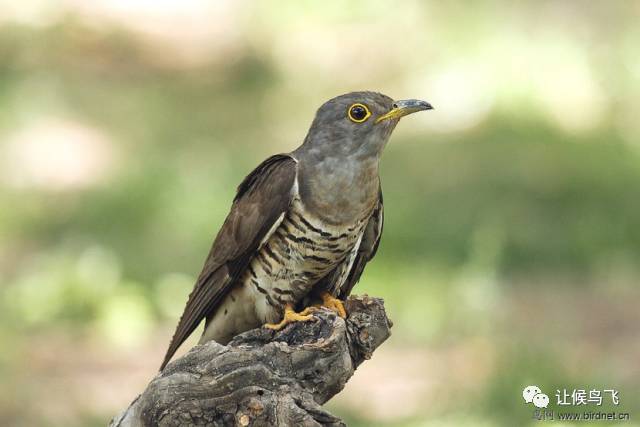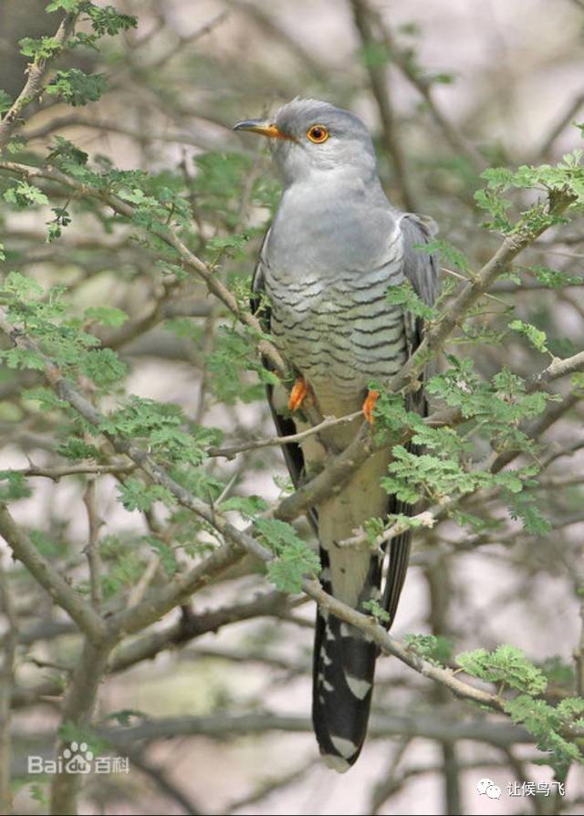 大杜鹃,学名Cuculus canorus,是中等体型(32厘米)的杜鹃鸟。它的上体为灰色,尾偏黑色,腹部接近白色并且具黑色横斑。