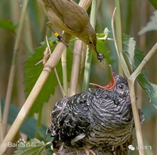 看!可怜的刺嘴莺妈妈正在喂养大杜鹃。