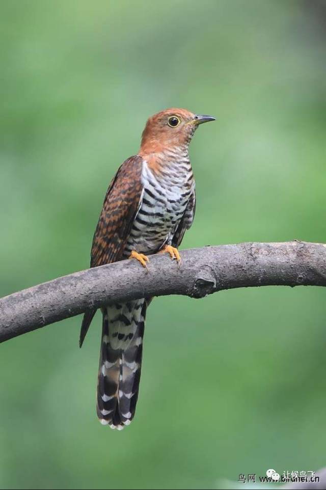 Bingo!大杜鹃有一种“红棕色”变异雌鸟,整体羽毛为棕色,背部有黑色横斑。请看下图。