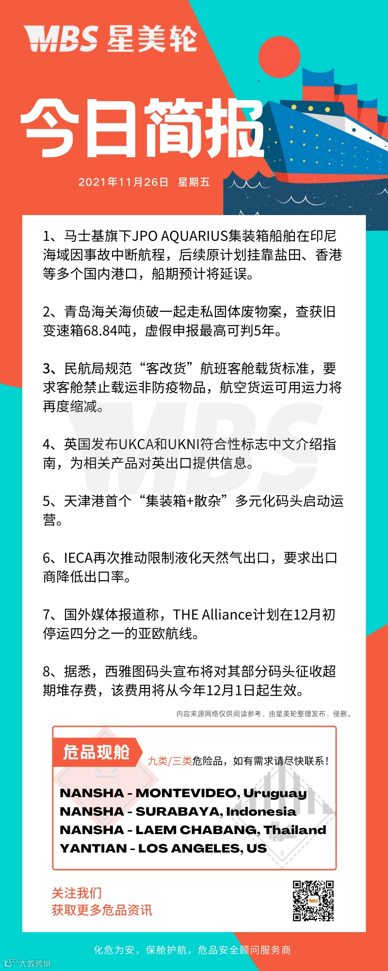 11月22日,洛杉矶港和长滩港联合发布公告宣布,在与美国港口特使John Porcari和行业利益相关者会面后,决定第二次推迟向船公司收取“集装箱超期滞留费”,新的收费时间暂定为11月29日。