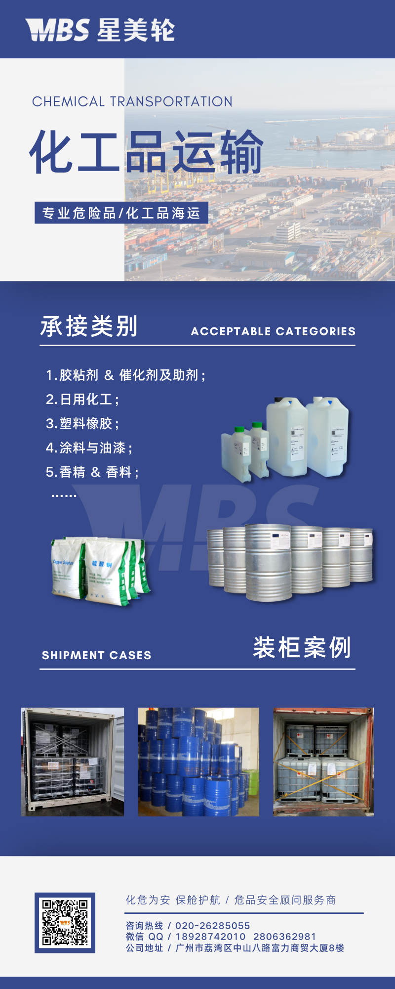 广州星美轮国际物流有限公司(MBS星美轮)成立于2012年,一直致力于危化品领域的物流发展和延伸服务,擅长应对各类突发事件。我司配备专业安全顾问,外聘权威危化专家定期强化巩固员工专业知识,承托客户交给我们的每一份安全与责任,并为客户提供覆盖世界各地的危化品进出口物流服务及解决方案。