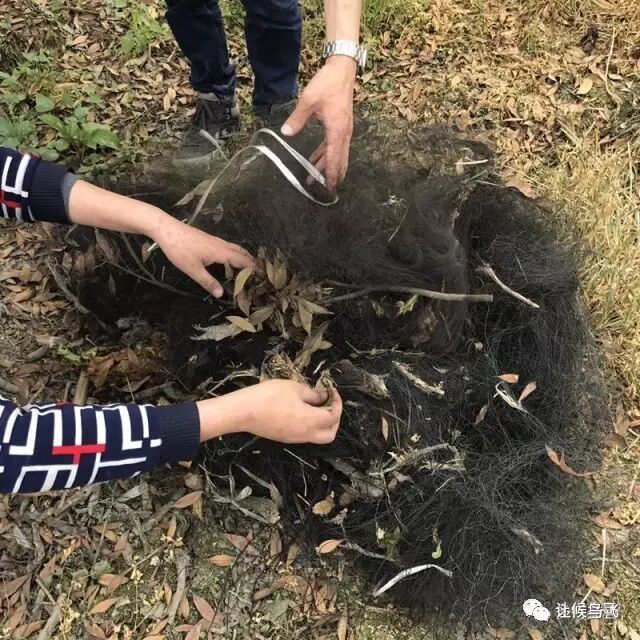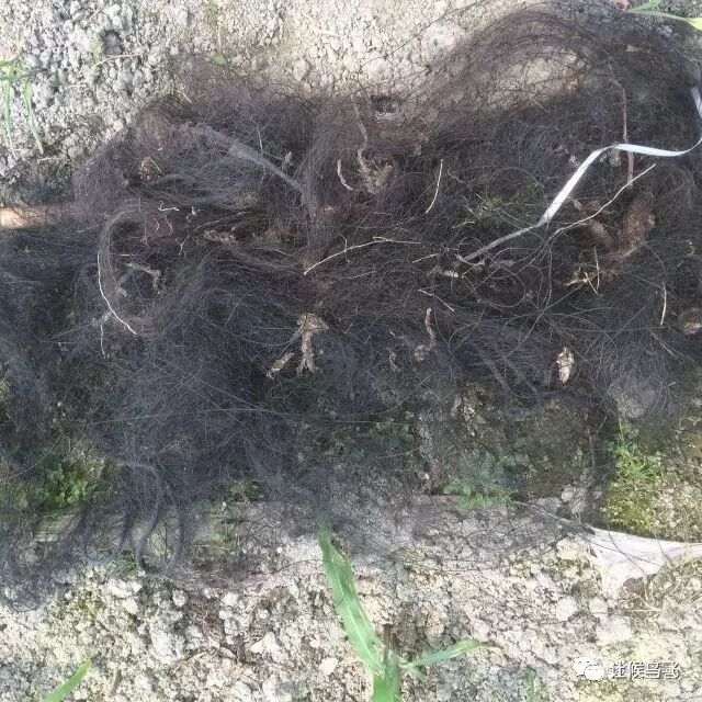 对这张鸟网清拆之后,碰到一个村民,试探着问他这里有没鸟网,得到的答案是有很多,沿着河边或小路一直再走,果然又是一张张鸟网,有些还是连片或围成圈。因为没有相应工具,只能放倒竹杠,拆绳子和徒手拉拽,清除相对困难点,速度自然也不快。