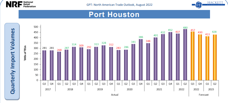这是休斯顿港集装箱吞吐量有史以来第二高的月份,仅次于2022年8月。
