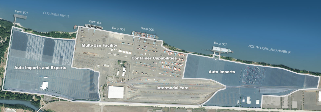 波特兰港的集装箱泊位处于T6码头,是俄勒冈州唯一深水集装箱码头。