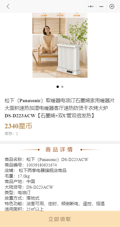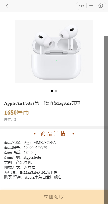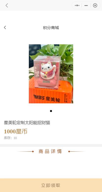 当您的星币累积到一定数量,您可以扫描下方二维码进入广州星美轮国际物流有限公司官方小程序,点击会话框中的积分商城→我的→积分商城→点击想要兑换的商品→立即领取→填写信息提交订单→等待收货即可。