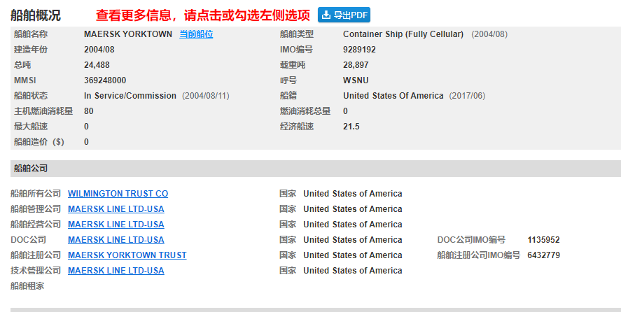 Maersk Yorktown轮建造于2004年,运力为2096TEU,悬挂美国旗帜,目前由马士基部署在塞拉莱(Salalah)- 吉布提(Djibouti)航线上,Maersk Yorktown轮船上货物均来自马士基或马士基旗下船公司。