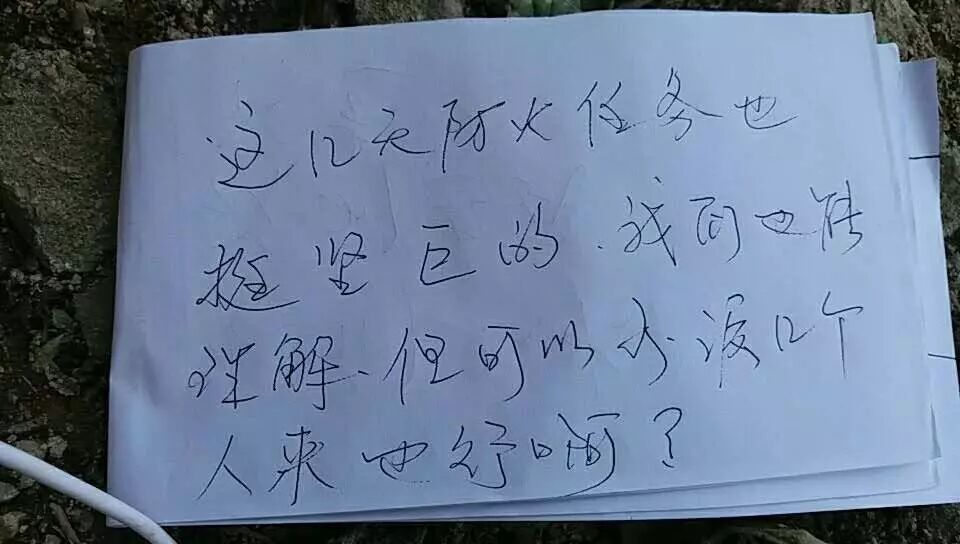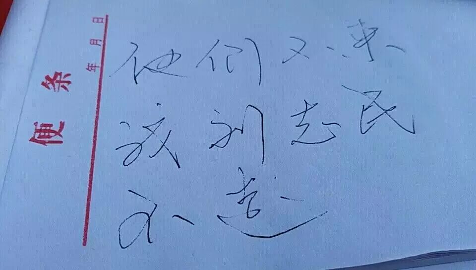 但刘爹着急呀,本来下山是要等警察来拆网的,但他等到下午,花儿都败了,最后还是没人来,一激动在饭馆里借了张纸写下一句话:他们不来我刘志民不走。