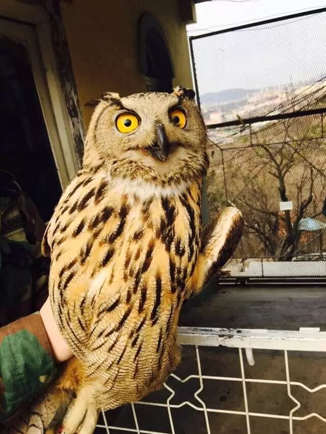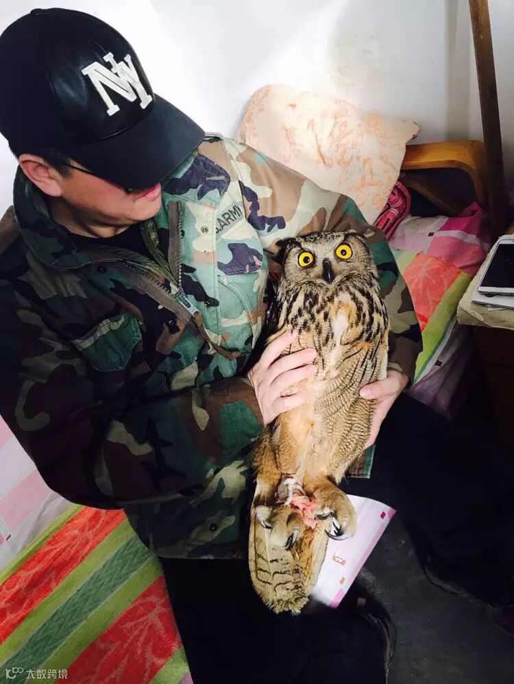 第二天一大早,小熊、韵白、奥利、蓉儿、浩缘一起把红隼送到旅顺百鸟园杨园长那里救治,之所以今天这么多人一起去百鸟园,还有一个原因就是大家想帮杨园长干点什么,正好杨园长一个人处理体型巨大的雕鴞非常困难,大家一起帮杨园长把雕鴞伤口换了换药,漂亮威武的大雕鴞在换完药后格外精神。