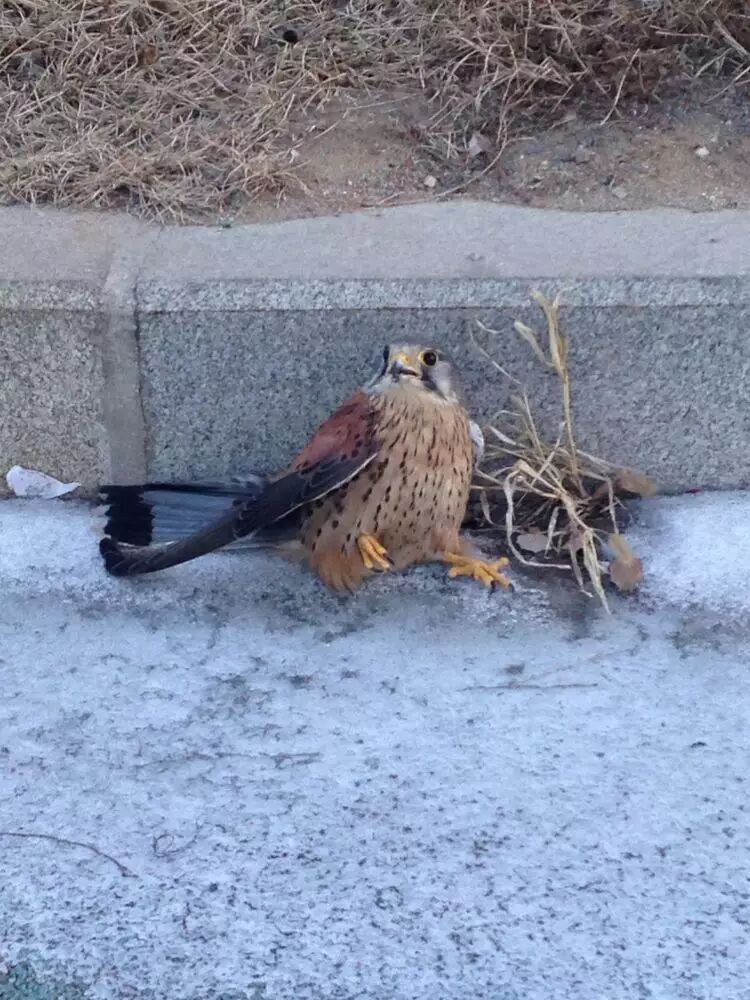 刚到家的小熊看到消息,马上将取鸟任务接下来,开着车接着浩缘就赶去出入境管理局取红隼去了,这两位志愿者是刚刚结束了金州湾西海白尾海雕巡护,刚刚到家还没来得及休息一下就接着又紧急出动了取伤鸟了。