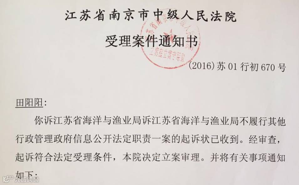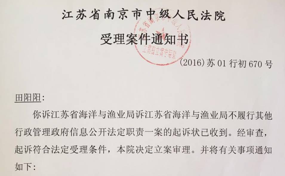 江苏省海洋与渔业局回复的条子泥一期项目环评报告及项目批复文件不符合信息公开条例的相关规定,我们已向江苏省南京市中级人民法院递交了诉状,目前案件已受理,初定3月1日9:30在第五法庭开庭,欢迎关心湿地、候鸟保护的各界人士参加。