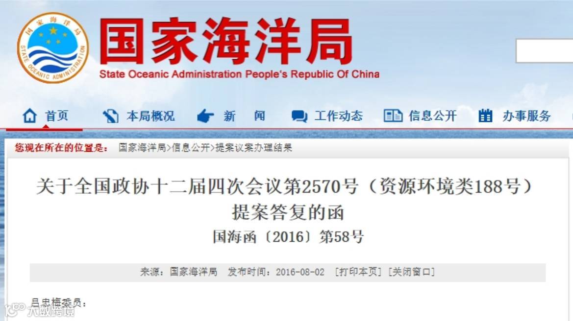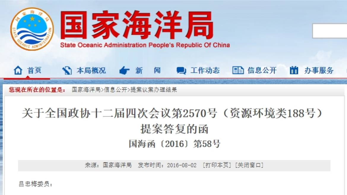 2016年8月,国家海洋局结合江苏省人民政府意见答复: