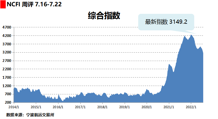 WCI各大主要航线运价全线下滑,美西、美东、地中海航线位于3-5%周跌幅;