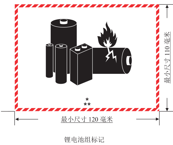 包装容器上张贴的危险货物运输标签最小尺寸为100×100mm。(除非包装的尺寸只能贴较小的标签,标志尺寸可按规定适当压缩,但仍应清晰可见且比例适当。)