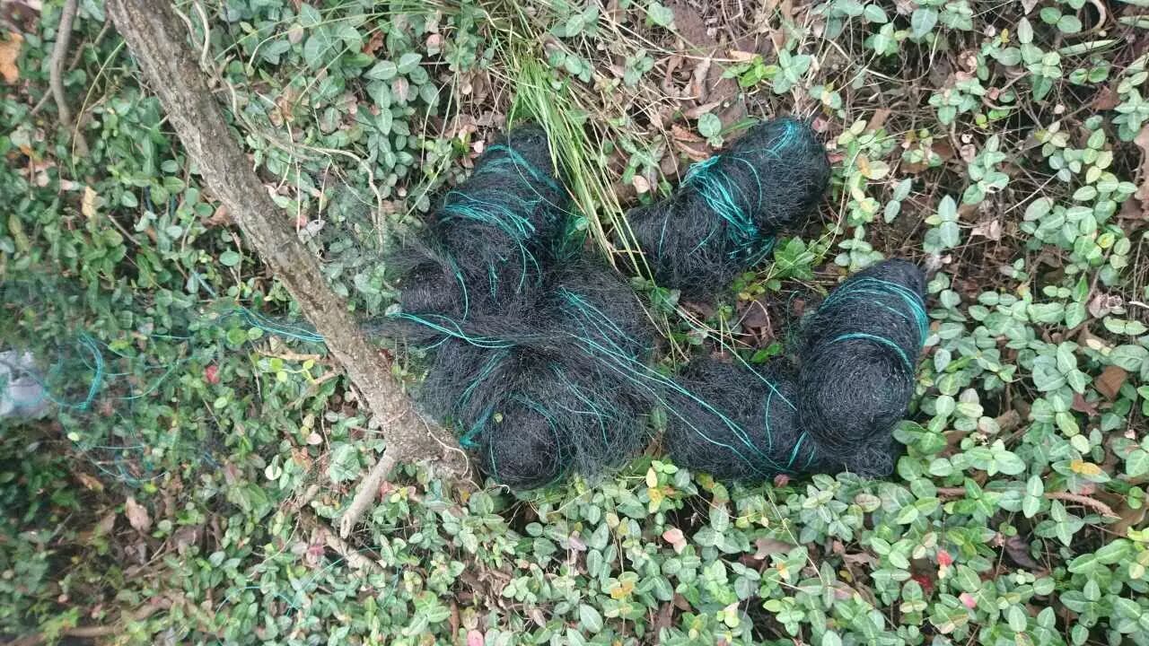 在海宁、海盐交界的高阳山,护鸟志愿者发现了插竹竿的洞有许多新土,判断捕鸟人晚上下网。10月4日,8名护鸟志愿者晚上上山清网,在高阳山上发现两公里长的鸟网。