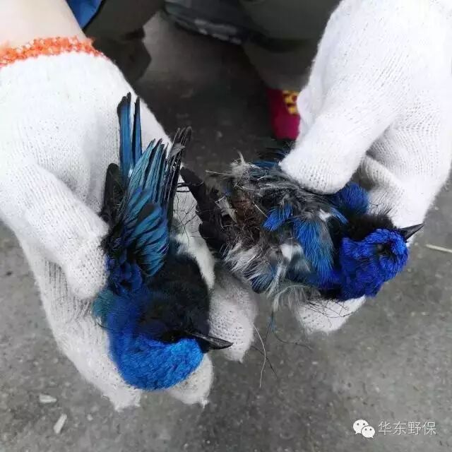 10月16日、17日:解救白腹姬鹟、领角鸮(国家二级)、虎斑地鸫、燕隼(国家二级)等活鸟,总计七个。死鸟约20个,和这个鸟网量比起来,鸟太少,多数已被摘走,死鸟许多都是鶲类,体积小,不是野味销售目标,陪葬。
